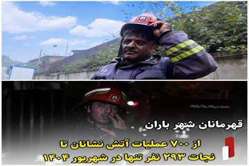 قهرمانان شهر باران در شهریورماه: از 700 عملیات آتش نشانان تا نجات ۲۹۳ نفر تنها در شهریور 1404