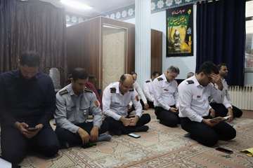 ۱۲۵ رشت_ به گزارش خبرنگار تحریریه خبر روابط عمومی سازمان آتش نشانی رشت، صبح روز چهارشنبه ۹ مهر ۱۴۰۴ فضای نمازخانه آتش‌نشانی با زمزمه معنوی زیارت عاشورا نورانی شد و جمعی آتش‌نشانان با دلی مالامال از ارادت به ساحت حضرت سیدالشهدا (ع) در این مراسم شرکت کردند.